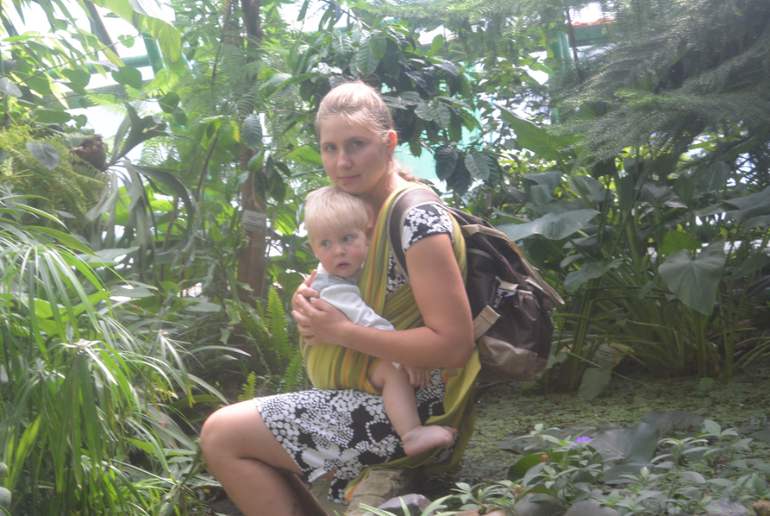 . К сожалению не всё удалось запечатлеть, но всё же. В последний день мы отправились в Ботанический сад, что находится на территории Аграрного университета. Здесь произрастают экзотические и местные растения, устроены пруды и Альпийские горки. Трогать ничего нельзя, поэтому Яша в целях профилактики был усажен в слинг.