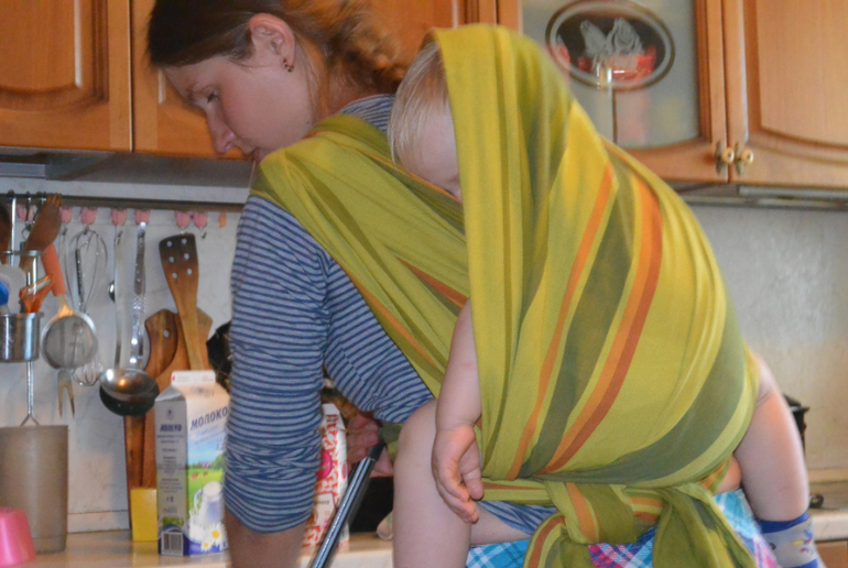 Я совсем не опытная слингомама. Начинала с эргорюкзака, когда Яше исполнилось 5,5 месяцев. Потом появился май-слинг, месяцев в 9, это была идея-фикс усадить сына за спину. Ему понравилось засыпать в таком положении, а я могла спокойно заняться уборкой и готовкой, без опасности отрезать ребёнку лишние части тела.