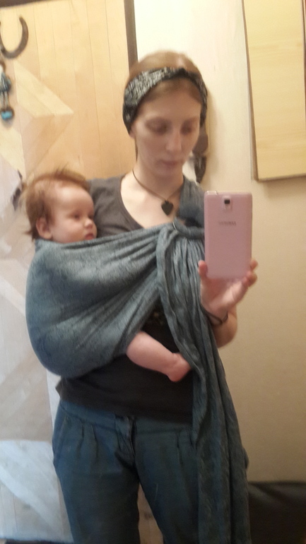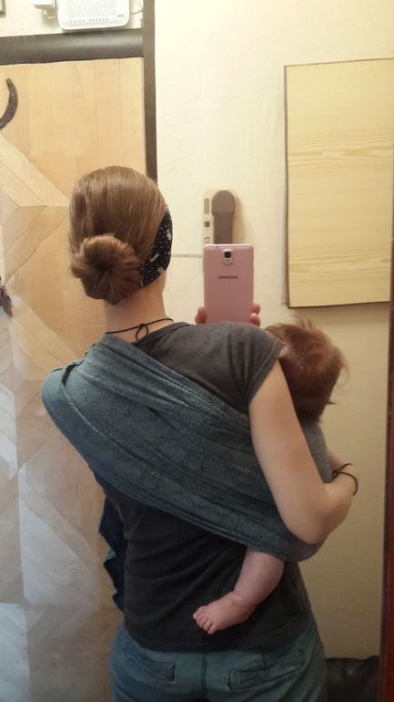 Поняла! А верхний край слинга не очень высоко на плечики ребенку натянула?