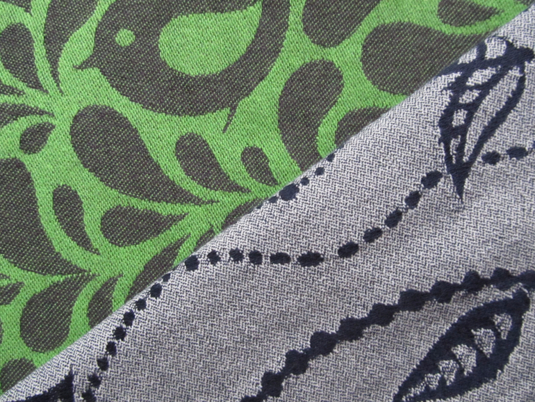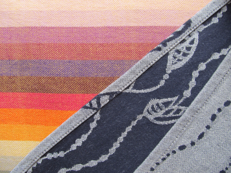 Как видно на этих фото, изнанка чёрная, и склонна к заломам и распушению (что даже странно при такой гладкости ткани). В целом, слинг не маркий, может служить "рабочей лошадкой" (учитывая вышеприведённое замечание о ручках наружу). Если бы у меня не было стопки любимых шарфов, я могла бы даже задуматься о приобретении май-слинга, но по индивидуальным меркам.