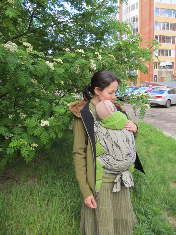 Добавлю, что инструкция меня несколько удивила: в ней нет описания намотки мая с расправленными полотнищами лямок. А мы смогли носить только так, хотя моя девочка весит всего 10 кг, иначе вообще не получалось М-позиции, несмотря на вытачки в нижнй части спинки. Это, как мне кажется, серьёзный недочёт со стороны производителя.
