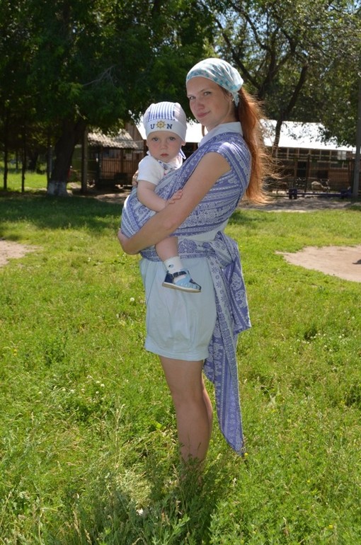 Это был мой первый опыт использования слинг-шарфа и для фотосессии я выбрала намотку "Крест над карманом". Потребовалось определенная сноровка и немного усилий для успешного завершения намотки. Однако, я бы не сказала, что это очень сложно, и думаю что любая начинающая слингомама легко справится с данным слинг-шарфом. Шарфик был мягким, не скользил, ложился мягкими складками и ласково обнимал меня и сыночка. Стоит отметить, что в жаркий летний день в нем было достаточно не жарко и комфортно. Отдельно хотелось бы отметить милый рисунок и расцветку, которые отлично подошли к нашему фотообразу.