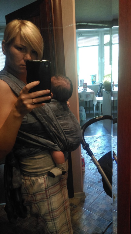 Учимся носитьВот стали мы обладателями слинга hoppediz Чикаго 100% хлопок. Илюше 2 месяца почти, вес 6,5кг. Это моя первая попытка КНК. Готова к критике.