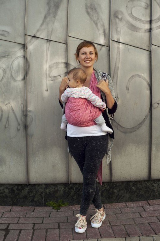 Этим летом у меня проснулась любовь к красному и розовому, и, увидев на картинке объявления о Слингкроссинге рубиновый Мэнкэрэ, я сразу решила - хочу участвовать, хочу победить, хочу этот слинг! Какова же была моя радость, когда я обнаружила красные ромбики, аккуратно свернутые предыдущей слингомамой. Такой сочный цвет, такой яркий и радостный! Гранатовый даже лучше чем рубиновый.