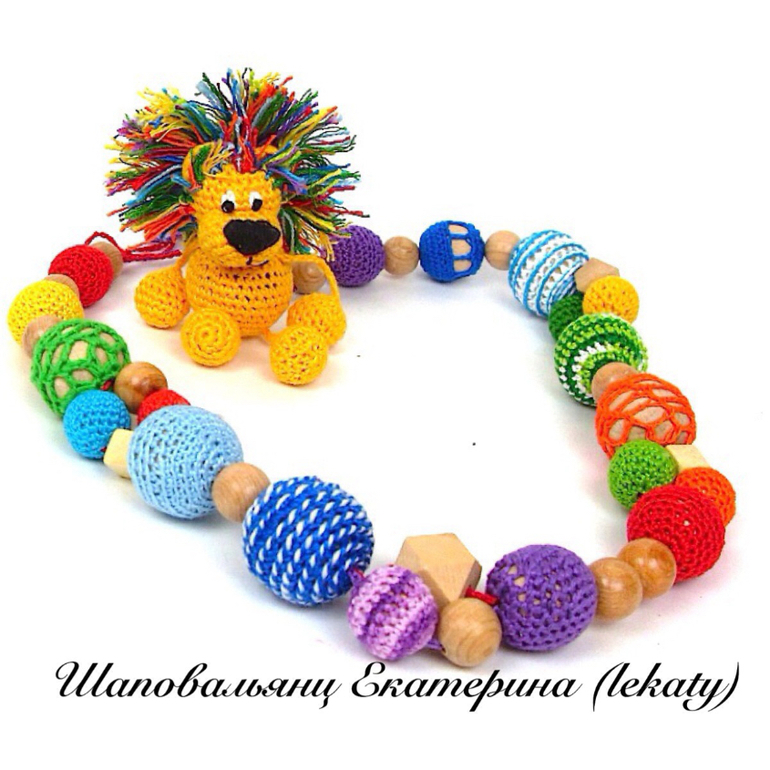 АксессуарыСвязались на заказ такие бусики) Были у меня когда-то подобные, но в другом цвете, поэтому, я бы сказала, что это повтор работы))) Позвонила мне заказчица и говорит: " Хотим с дочкой бусы с львёнком, но мы очень любим все радужное". Вот так и родился такой Радужка))) Материалы: хлопковая пряжа, деревянные бусины разных форм, размеров и обвязки, в львёнке холлофайбер (голова), погремушка ( тельце) и деревянные бусины в ножках. Под катом еще фото