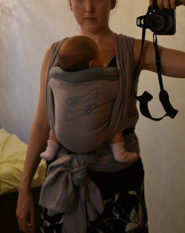 Учимся носитьНошу в слинге уже где-то полтора месяца. Проверьте, нормально ли получается намотка, стараюсь регулировать натяжение, как могу)