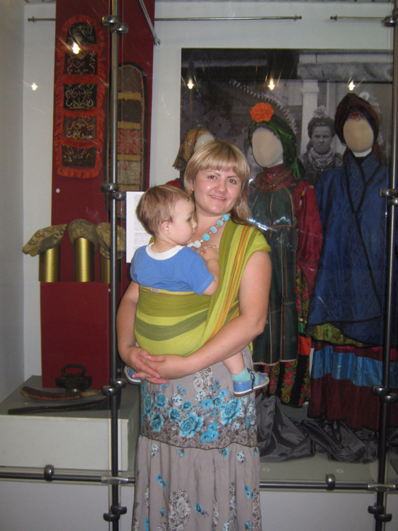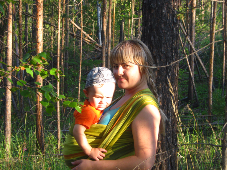 Меня зовут Татьяна, а моего слингожителя Руслан, ему уже год и 5 месяцев и весит он около 12кг. Впервые в нашем городе случилось такое удивительное мероприятие под названием «слингокроссинг» от компании А-Мама. Узнав о нем мы с сынулей решили обязательно поучаствовать, возможно это наш последний шанс спеть оду слингу, ведь слингопенсия увы не за горами. Погода у нас в июле выдалась весьма жаркая за 30-35 ®, не благоприятная для слингоношения, и все же мы выбрали номинацию «мама-путешественница», лишь бы дома не сидеть. И вот в назначенное время приехал он - слинг-шарф двойного диагонального плетения Зеленый Табатай.