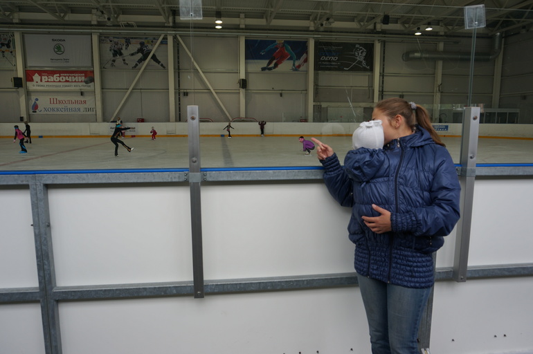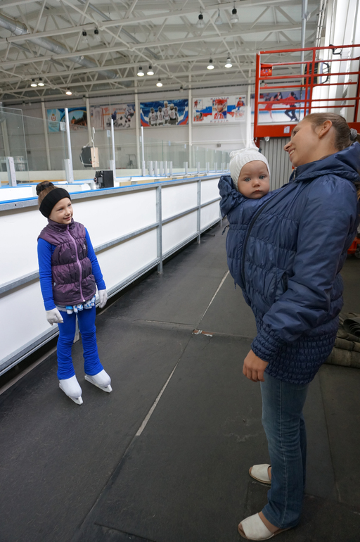 Наша старшая, Алиса, ходит в секцию фигурного катания, казалось бы... как маме с малышом не удобно водить... Но не тут-то было, на помощь нам приходит слинг-шарф.