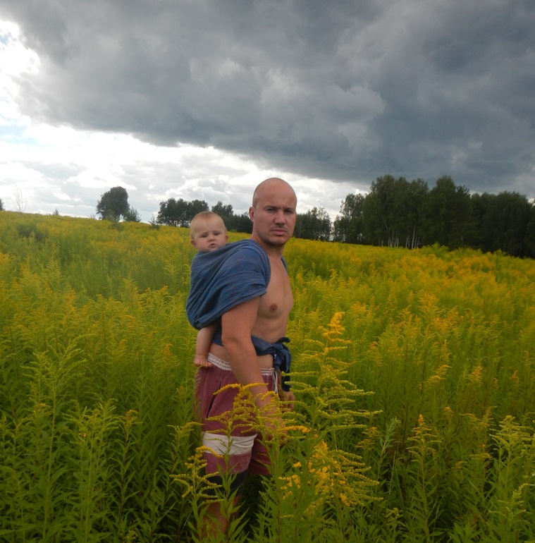 За время, что шарф был у меня, он успел побывать на слинговстрече, совершить поход в лес и был примерен нашим папой.