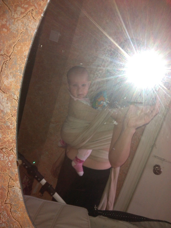 Дочери 4,5 месяца. Около месяца по некоторым причинам мы не одевали слинг. Сейчас пытаюсь намотать - дочь вырывается, выпрямляет ножки, упирается в меня руками пытаясь отстраниться, чем сильно разбалтывает верх кармана. Когда пытаемся вытащить ручки вообще весь карман в складочку получается. Выглядит это примерно вот так.