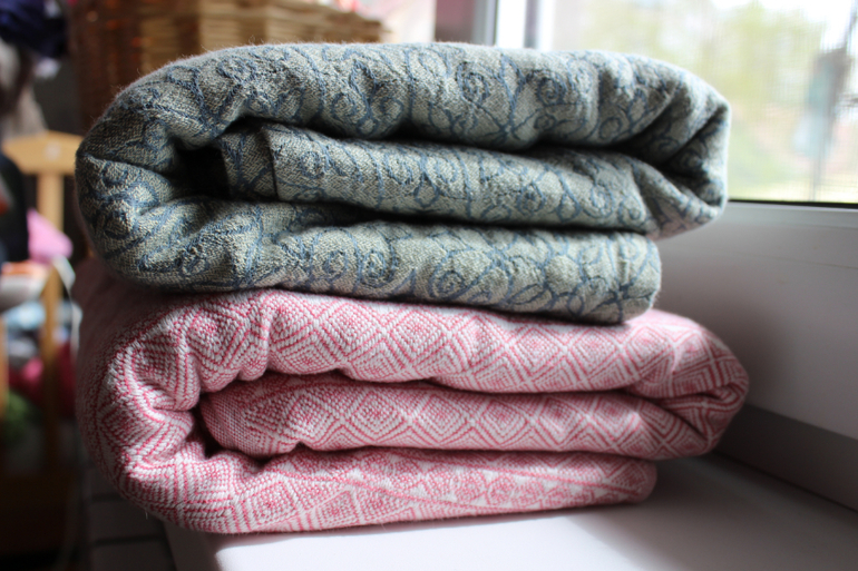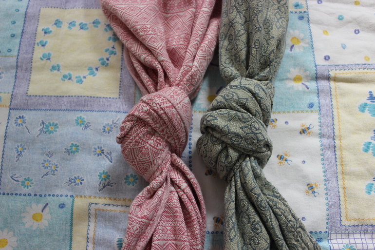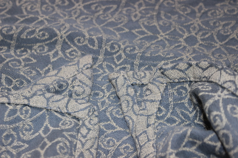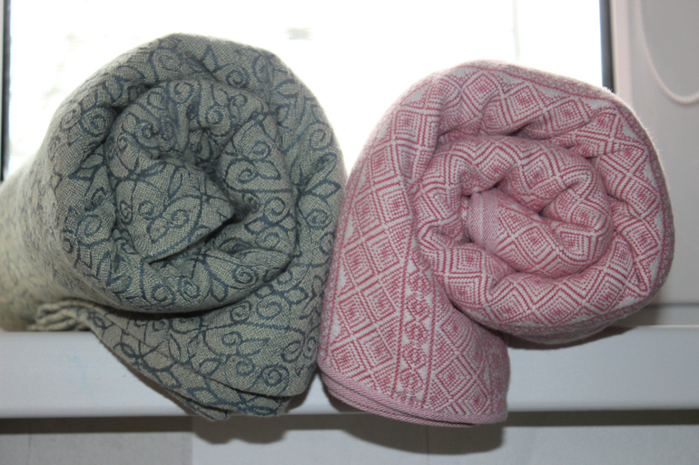 К сожалению, шарфику с нами не повезло - когда он приехал, у нас как раз случился кризис слингоношения, плюс ребенок резко прибавил в весе и мне стало тяжело во всем. Так что будет больше фотографий шарфа, чем в шарфе.