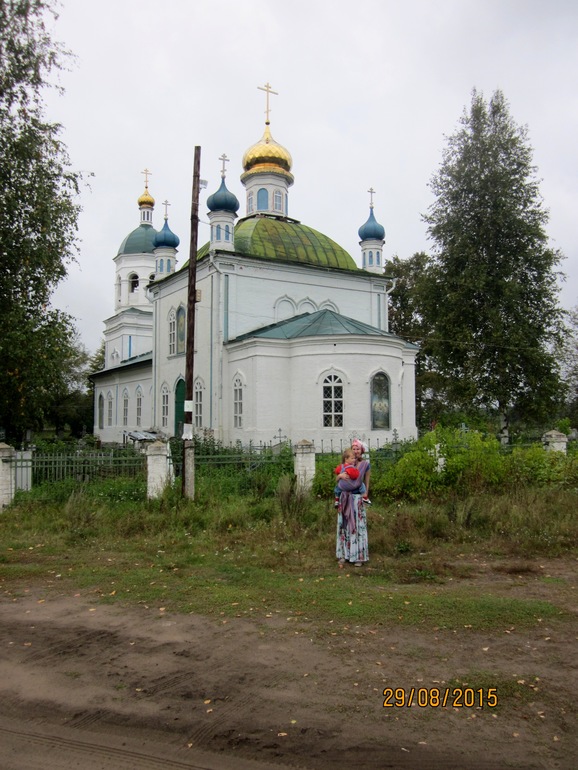 Посетили и церковь Троицы Живоначальной, построенной в 1867. Церковь благополучно пережила сталинские времена, была в округе одной из действующих в послевоенное время. Говорят, что внутри церкви сохранились украшения и предметы, относящиеся к ХВИИ-ХВИИИ векам, например, посох, принадлежавший по преданию преподобному Евфимию Суздальскому, Евангелия, датированные 1637 и 1728 годами. Жаль, что сегодня нам не удалось взглянуть на них.