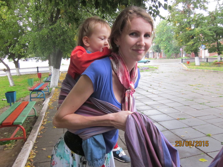 Слинг-шарфВсем здравствуйте! Меня зовут Анна, мне 29 лет, сынок Ваня возрастом 1 год и 9 месяцев. Участвуем в слингокроссинге, организованным "Активной мамой", в номинации "Мама-Путешественница".