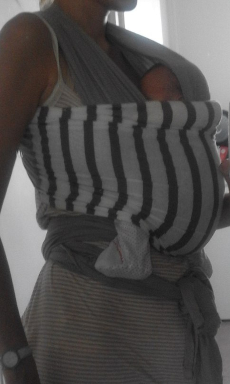 Не нужно фиксировать голову малыша полотном слинга. Поддержать шейный отдел может тканевый валик под шеей.