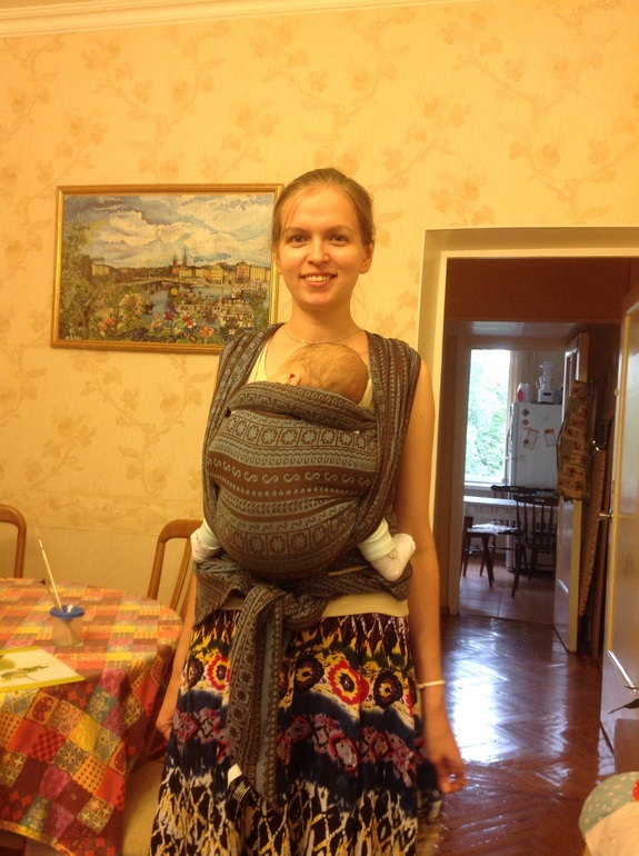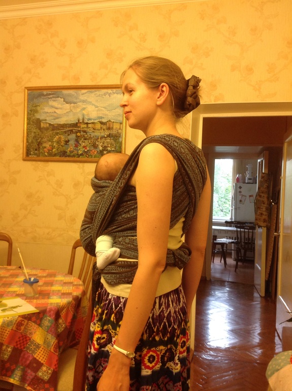 Учимся носитьРебенку 2,5 месяца, весит 6,4 кг. Намотка не первая, но еще нет уверенности, что все хорошо, так что буду благодарна за замечания!
