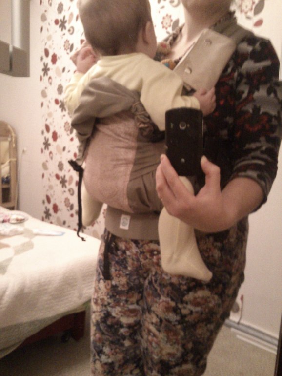 Спасибо! Нет, Кроху+ не предлагали... сегодня пробовали еще раз, постараюсь выложить фото. Какие я сделала выводы: сажать ребенка ниже, и чуть свободнее притягивать. Тогда и попа ниже повисает, и ручки над лямками не висят.