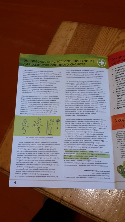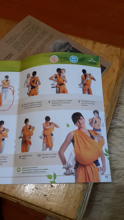 Ну и замечательная инструкция: в начале весьма дельная статья о принципах ношения детей, написанная врачом ( иногда это очень важно, например для мужа или бабушки ). Жалею, что не сфотогрвфировала более подробно, чтобы текст был разборчив