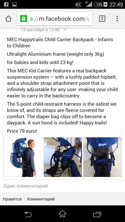 Неудобно. Спина дико болит. У меня муж не хотел слингом обматываться. Но один раз согласился, и, конечно, после этого сразу выставил на продажу такой замечательный рюкзачок как на второй фотке :))) У нас Альпы рядом, мы постоянно треккингом занимаемся с детьми.