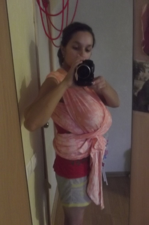 Учимся носитьДобрый вечер! Пробую мотать горизонтально, так как вертикально малышка уже пробовала, спит мало, надежда на горизонтальное положение, хотя погуляли и та же история, но это другая тема уже)