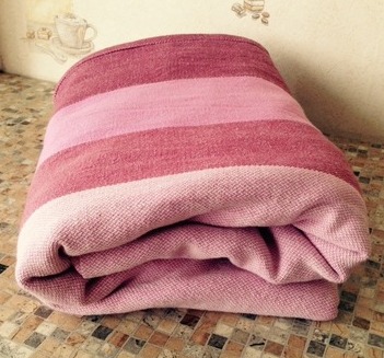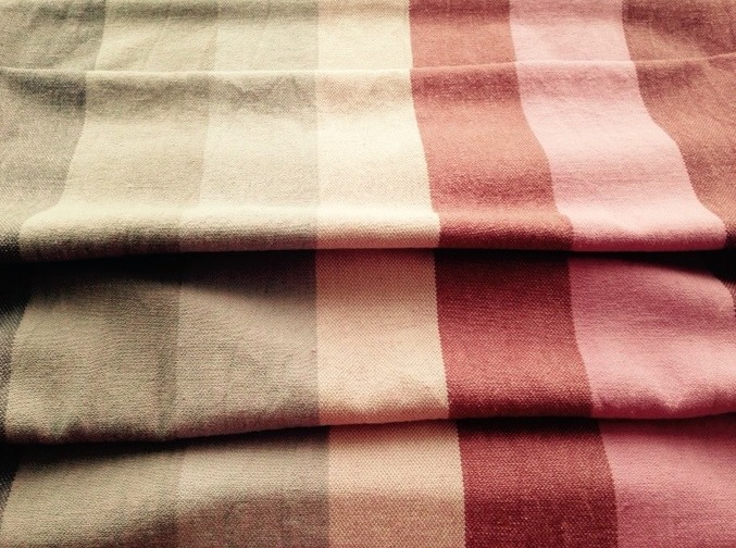 Шарф полосат, полоски идут от светло-серого к разным оттенкам розового, цвета спокойные, не кричащие: