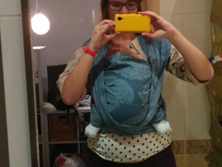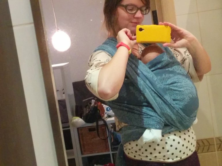 Учимся носитьВпервые мотаю, шарфик diva essenza, у малышки дисплазия, так что мне особо волнительно за правильность намотки. А ещё не могу понять, не пережимаю ли.