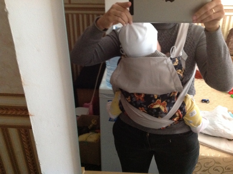 Капюшон сверните в рулончик и уберите на резиночки , чтобы вам не мешал сейчас. Лямки слинга расправьте по плечам, спине и ребенку, следите, чтобы лямки нигде не перекручивались. После этого еще раз покажите положение ребеночка спереди. сбоку и желательно фото вашей спины. И еще следите за симметрий, чтоб все было натянуто симметрично.