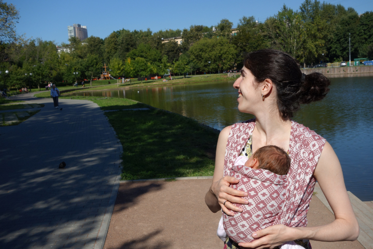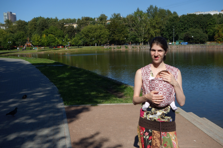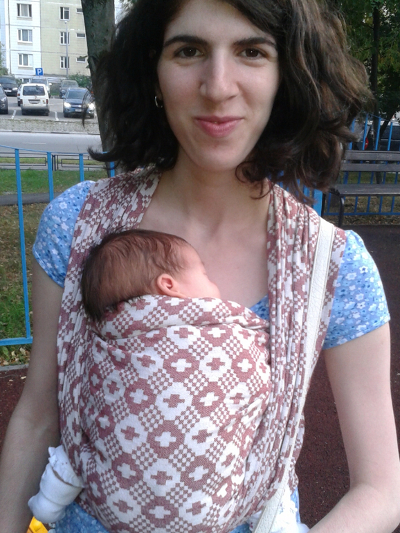 И в завершение про универсальность. Мы его носили в последние жаркие деньки и 23 - это предел комфортной температуры в нем. В 25 нам было уже ощутимо жарко и «прилипательно». К тому же месячного малышка хочется мотать во что-то более мягкое и нежное )). Этот шарфик я бы начала использовать месяцев с 5-6.