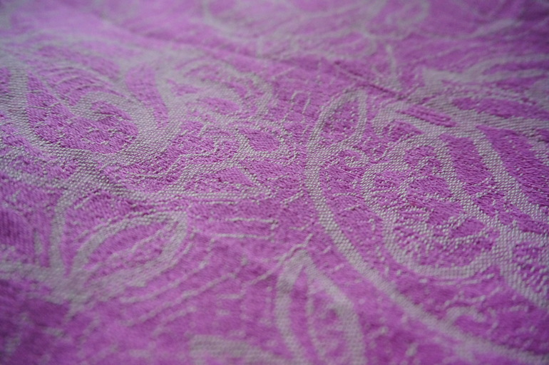 За счет кружева, так называемого , очень хорошая цепкость. На мне завязались в КНК на 1 узел и даже не уползли никуда с моими 9 кг. Шарф достаточно плотный, но в тоже время нежный.