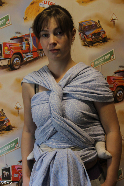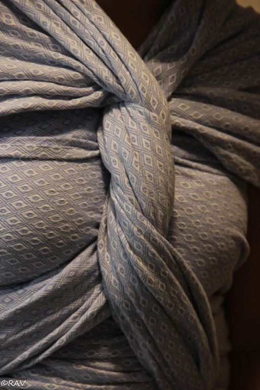 ИМХО: для меня данный экземпляр оказался тонковат, через час, полтора ношения начинала болеть спина, борта врезались в плечи. Хотелось бы конечно чтоб шарф был подшит на две стороны, так как шарфик имеет две стороны, голубой на белом и белый на голубом. Скорее всего будет склонен к маленьким зацепкам из-за особенности плетения. Я бы рекомендовала его как первый для младенца, но не единственный, скорее всего для деток до 8-8,5 кг.