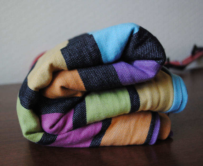 Изначально новый не картонный, пластичный. После пары стирок стал совсем мягким и я бы даже могла рекомендовать совсем маленьким деткам. Хорош будет, на мой взгляд, до 10 кг примерно. Не скользкий, подойдет начинающим слингомамам.