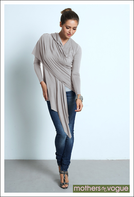 В чем секрет этого кардигана? "Хвосты" с драпировкой можно использовать как никидку для кормления. Во время кормления драпировку можно пристегнуть с внутренней стороны (с обеих сторон изнутри пришита петля, а на конце каждой драпировки - пуговица).