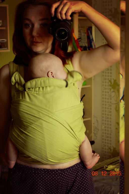 Это желательно для маленьких деток. А я сколько сталкиваюсь с намотками май-слингов и шарфо-маев, то больше поддерживаю именно широко расправленные лямки по спине и попе ребенка. В поддержке это напоминает шарфовые намотки кпк и кнк, ребенка нести в несколько раз легче, нежели мы лямки уберем под коленочки сразу. Мне положение малыша в салатовом шарфо-мае понравилось. Можно конечно попридираться к фото, но у мамы для первого раза все очень даже достойно))