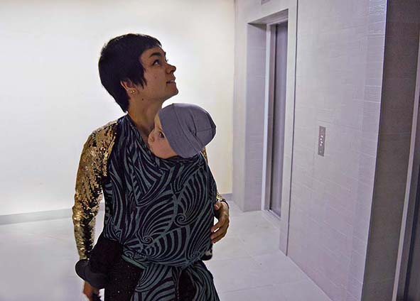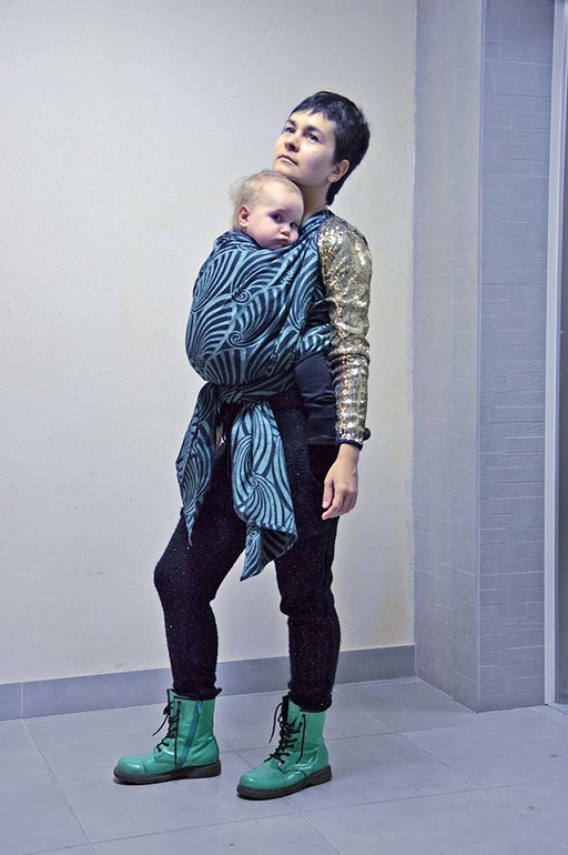 Теперь про шарф с точки зрения утилитарности. Это 100% хлопок. Он очень толстый, плотный и широкий, и длинный, и вообще огромный :) Я купила шестёрку, длина слинга до стирки была 515см (шестёрочка, да), сразу после - 482, но в носке он моментально вытянулся снова. И ширина почти 80. Плотность стираного шарфа, таким образом, приближается к 300. Это прекрасно! В нём можно гулять, завязав один узел, и он ожидаемо будет нести и прекрасно держать сколько угодно (мы гуляли в нестираном четыре часа в первый же день, не потому, что мы маньяки, а просто было много дел и было не тяжело, вот и загулялись). Такой шарф можно мотать не тщательно, хуже от этого не станет, там столько ткани, столько складок, просто счастье для спины. Он не жёсткий для своей плотности, совсем корзиной не назову, в общем, очень мне нравится. Обожаю этот шарф, до сих пор не дала поносить даже подругам, я жааааба :) По сравнению со старорелизным Dutch tiles - аккуратнее и толковее сделаны метки середины и состава, за что тоже производителю спасибо.