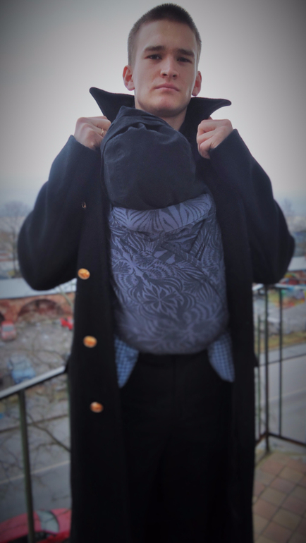 Акции и конкурсыДоброго времени суток, меня зовут Диана. Объявление о КОНКУРСЕ СЛИНГОСТИЛЯ ОСЕНЬ-ЗИМА 2015/2016 я увидела давно, но не спешила участвовать, так как не было идеи меня вдохновляющей. Но...Стоило рассказать мужу Илье, как он с удовольствием подхватил идею мужского образа и даже согласился стать моделью, хотя, к слову, он освоил слинг совсем недавно и позировал первый раз в жизни. Нашему слингожителю сегодня исполнилось 3 месяца и его зовут Владимир. И сегодня мы представим вашему вниманию образ в длинном пальто и слинге под названием Птицы Макси Металлик от Вольги.