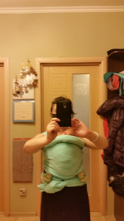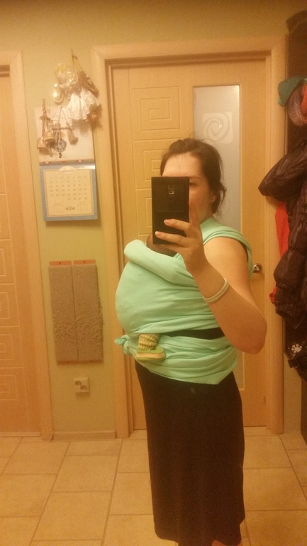 Вот и мы дождались нашего малыша. Оцените, пожалуйста нашу первую намотку! Трикотажный шарф, малышу 1,5 недели, заснул сразу после намотки)