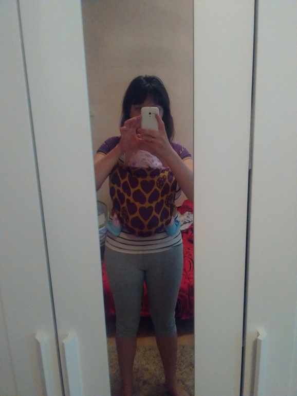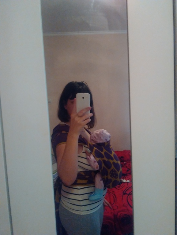 Учимся носитьДевочки исправила прошлые косяки,вывела под ножки,ширину уменьшила с помощью резинки,посмотрите все ли верно,и у меня есть ощущение что под кооеночками края слинга режут.