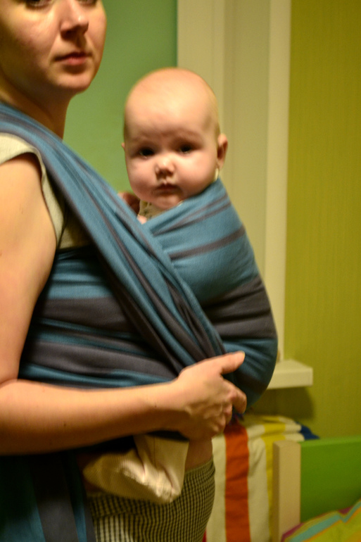 Добрый вечер. Намотка хорошая, но когда расправляете полотна, по спине ребенка складок быть не должно, а они есть у вас. Сзади перекрест полотнищ лучше пониже опустить, чтобы они не давили шею. А так все хорошо у вас.