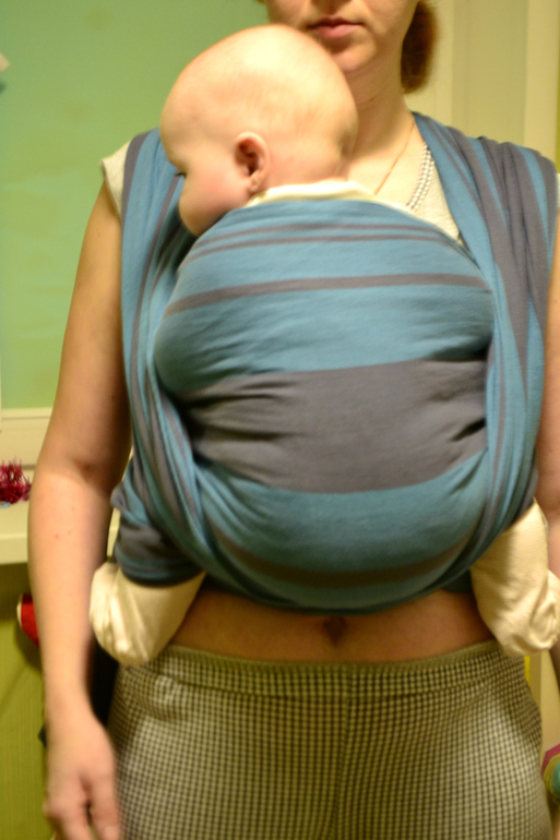 В целом положение малышки хорошее - плечи ближе к вам, чем попка, коленки на месте) но всю намотку хочется расправить)