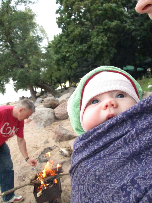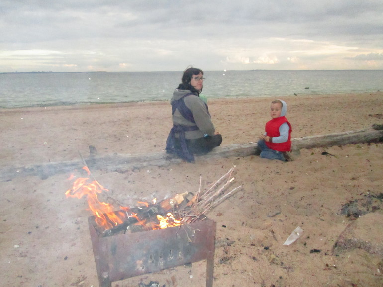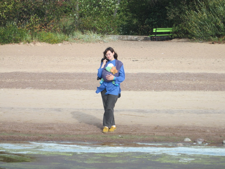 А теперь о поездке: мы ездили своим ходом: на автобусе, электричке, метро, электричке, такси - и так же обратно (только без такси). Все это время Соня была в слинге, то спала, то нет. В Репино мы очень много гуляли - по пляжу, по лесу, по парку, ездили в Солнечное. Жгли костры, катались на качелях, собирали ракушки, ходили по косе. С коляской это все было бы нереально. Поэтому спасибо слингу за такие чудесные выходные вместе с семьей!