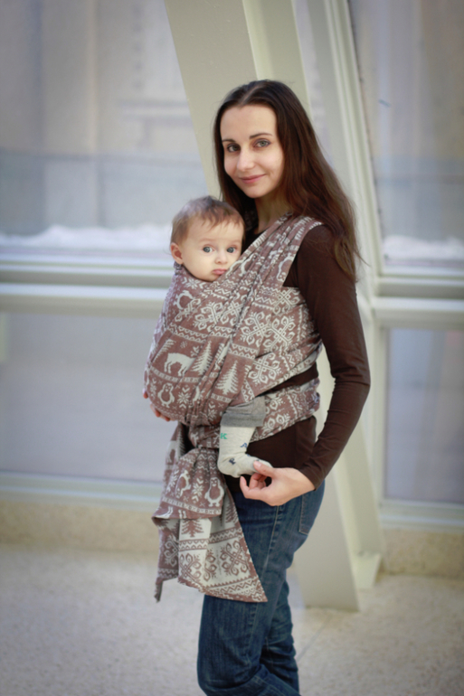 Слинг-шарфНовогодняя сказка! Представляем вам фотосет слинга-шарфа "Фрост" (брауни), в ролях: мама Соня, полугодовалый Илюша, а также сотканные на слинге пингвинчики, снежинки и олени.