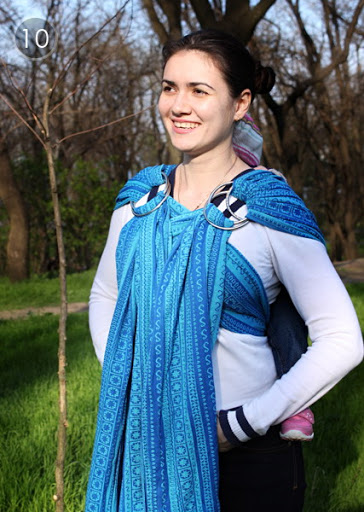 Ирина, вот такое использование кольца в намотке идеально при зимних намотках по верх одежды, когда ты уже не волнуешься, что лямки соскользнут с куртки. Кольцо можно заменить узлом.