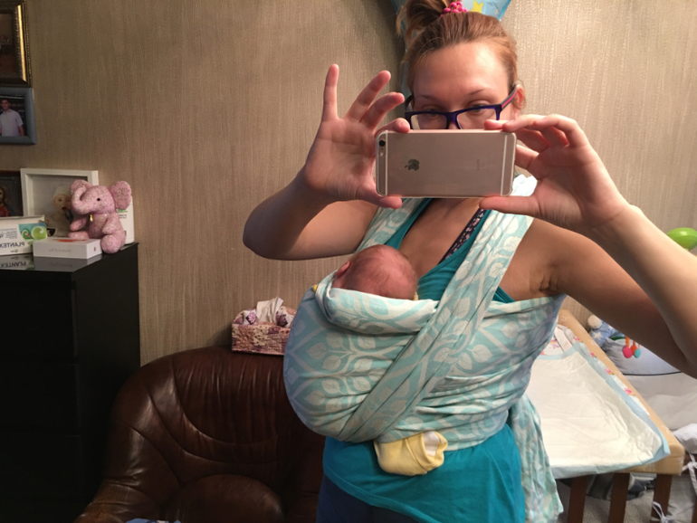 Добрый вечер, вы молодец, что решили освоить слинг. По намотке у вас последовательность намотки правильная, есть валик для поддержки головы, коленочки выше попы, спинка малыша скруглена. Что хотелось бы улучшить: 1. Для такого маленького ребенка полотнища лучше не расправлять, носите его с нерасправленными полотнищами. 2. Мне кажется, что ребенок на вас все таки низковато, вы на этом уровне его носите на руках? Попробуйте мотать его на том уровне, на котором держите, обнимая, двумя руками. Если вам удобно так, то ок, главное, чтобы попа малыша была не ниже уровня вашего пупка. 3. Верхняя часть кармана (не только борт) натянуты недостаточно, из-за чего верхняя часть тела ребенка отклонилось немного в сторону и она не притянута к вам ближе, чем таз. Посмотрите на фото, где с нерасправленными полотнищами и увидите, что тело малыша не симметрично в кармане. Для исправления ошибки придайте телу малыша правильное положение руками и попробуйте почувствовать слабину ткани слинга, которую надо подтянуть. Слабину вы перегоняете подмышку от центра и подтягиваете противоположное полотнище со стороны, которое ближе к вашей шее, далее в крест под попой и назад, в узел. 4. Валик не должен закрывать уши ребенка, поэтому делайте его поменьше. Контролируйте помимо м-позиции симметрию тела и ножек в слинге. Если будут еще вопросы - обращайтесь.