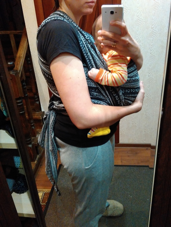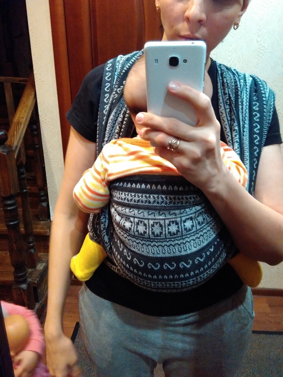 Учимся носитьСегодня купила первый шарфик, постирала и уже опробовала. Дочь правда была не в настроении, поэтому как мне кажется не очень хорошо притянула её в районе спины (плюс она мне не дала шарфик выше поднять, т.е. до плеч, сразу дикий ор), так вообще можно? Напомню нам 4,5мес и 6,2кг. И ещё посоветуйте какие намотки проще освоить новичку. Всем спасибо!