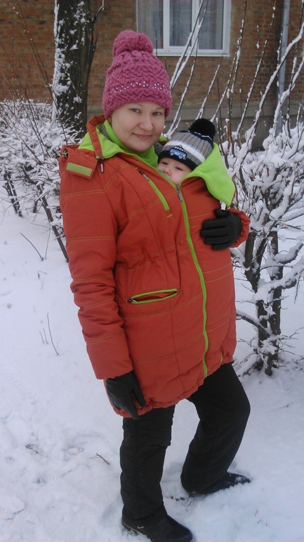 У меня как раз оранжевая. Я в ней и зимой хожу. Сначала было очень не удобно. Я не могла приловчиться, что бы закрыть хорошо малыша. Плечики были открыты (у меня рюкзак, если это имеет значение). На прогулках нервничала.