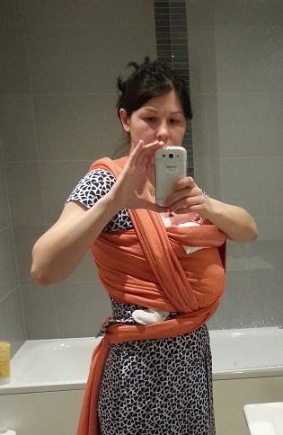 мне кажется валик головку совсем не фиксирует. посмотрите видео слинголиги. там все очень подробно. удачи! все получиться! шарфик такой позитивный))