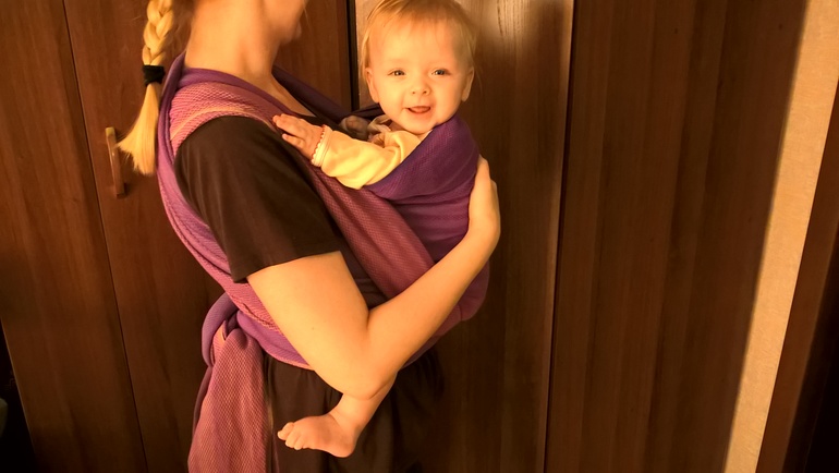 К сожалению, я приболела во время тестовой недели, поэтому не до конца смогла распробовать этот слинг, и фотографии у нас только домашние…
