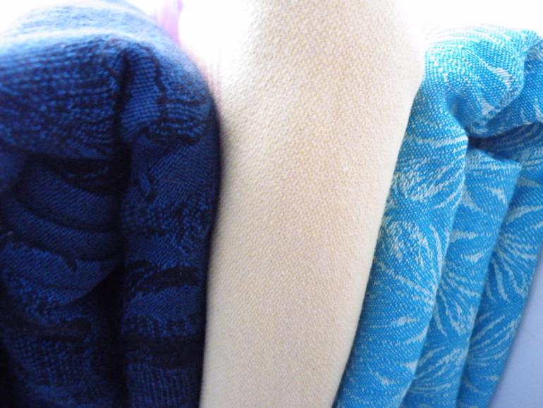 Тактильно неплохо. Я тестировала шарф первой, совсем новым, поэтому он, конечно, был грубоват. Но уже достаточно мягким из коробки, не картонка. При этом голые плечи от него не сильно пострадали. Ко мне примерно в то же время приехал новый слинг от Вольги - птички Арктика, поэтому я буду часто их сравнивать. Так вот птички в околоновом состоянии мне натерли все плечи в рюкзаке, а Лилии нет, плюсик им.