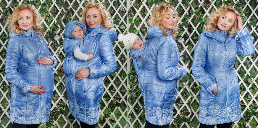 В комплекте: вставка для беременных, вставка для слингоношения, съемная манишка для мамы, съемный детский капюшон.