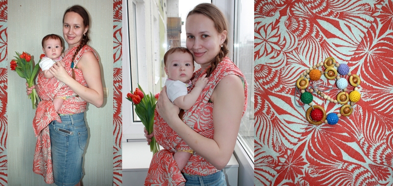 Немного о моделях... Мама Маша ростом 170 и 44 размера, опыт слингоношения имеется, ибо ребенок второй. Ребенок: почти 5 месяцев и почти 7кг (идеальные показатели для слиншоношения =))