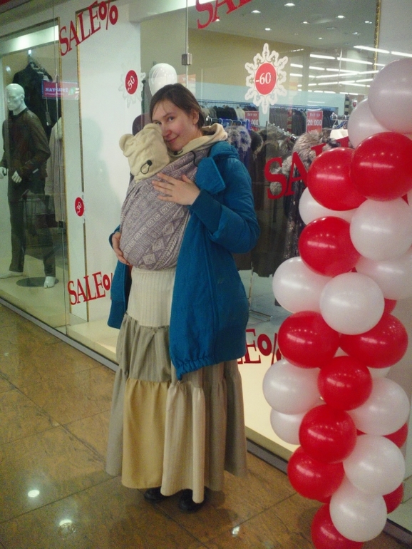 Потом стало полегче. Видимо, он всё же немного разносился, и стал ложиться плотно, как и положено. Я даже рискнула на длительный выезд. В последний день тест-драйва я съездила в контактный зоопарк на автобусе, и немало времени провела со спящим в слинге ребёнком. И даже не устала. Но все равно не заметила, чтобы он был очень уж грузовозным. Тут мои ожидания не оправдались. Я бы сказала, он скорее универсал, хотя, конечно, младенца я в него точно мотать не стану.